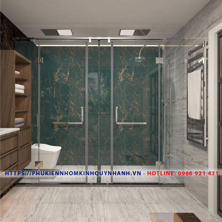 - Hệ phòng tắm kép, bản lề trục xoay mạ PVD