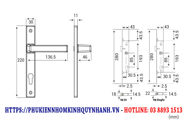 - Thiết kế linh hoạt: Phù hợp cho cả cửa 1 cánh và 2 cánh với các dòng nhôm hệ thông dụng như Hệ 55, Hệ Xingfa.